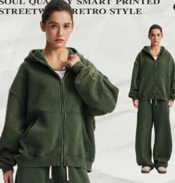 Men's Washed Sports And Leisure Hooded Zipper Jacket