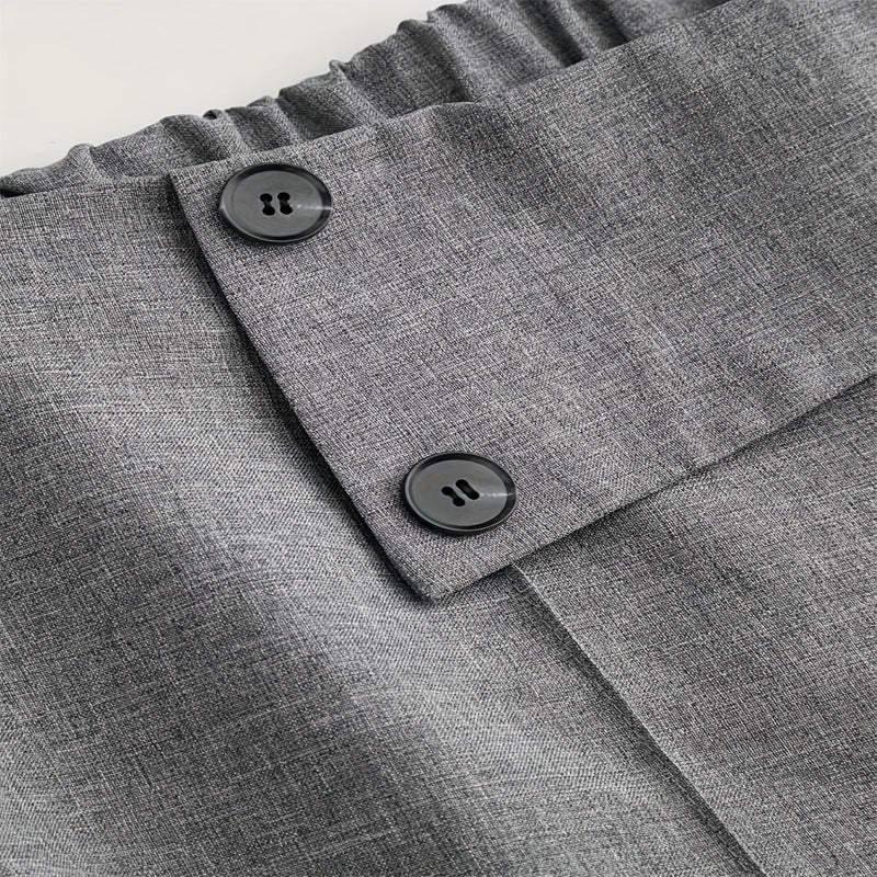 Women's Elegant High-Waisted Wide Leg Pants, Solid Color Button Detail Trousers for Office and Casual Wear