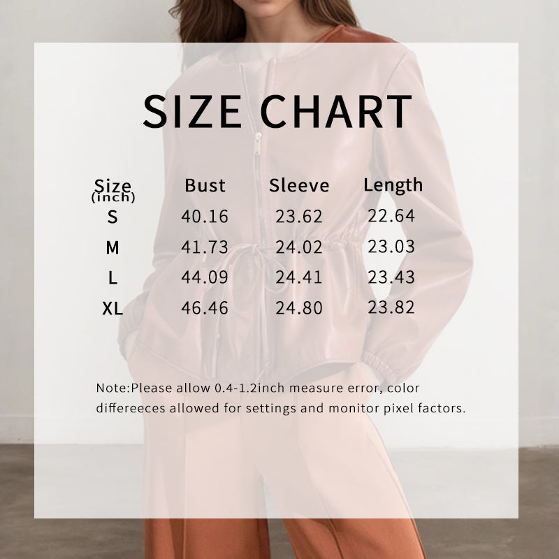 Women's Zip Front Faux Leather Jacket, Long Sleeve Drawstring Waist Jacket